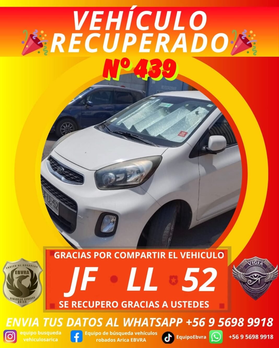📌 TRAS UN DATO CERTERO DE VEHÍCULO CON ENCARGO A LA CENTRAL DE CENCO CARABINEROS EN EL SECTOR DEL AGRO SANTA MARÍA SE NOTIFICO A SU DUEÑO QUIEN LLEGO A RECUPERAR SU VEHÍCULO QUEDANDO MUY FELIZ.